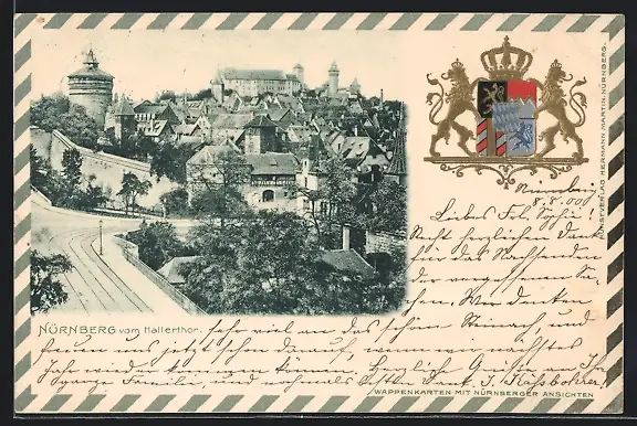 Präge-AK Nürnberg, Teilansicht vom Hallertor, Wappen