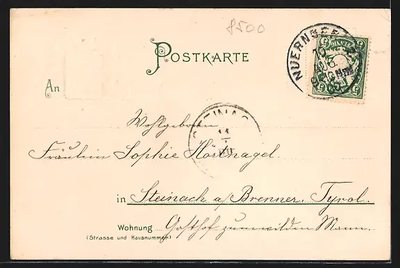 alte Ansichtskarte, gelaufen 1900, guter Zustand