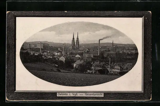 Präge-AK Oelsnitz i. V., Gesamtansicht, Passepartout