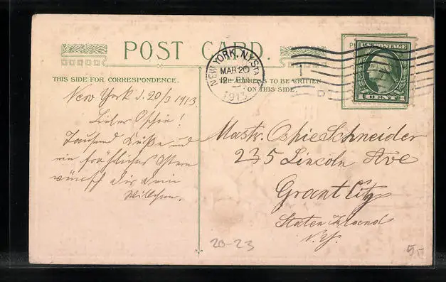 alte Ansichtskarte, gelaufen 1913, Stempelspur, guter Zustand