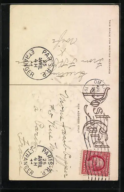Personenbezogene Daten auf der Rückseite der Karte wurden durch blauen Textmarker unkenntlich gemacht. Die blauen Stellen sind auf die Vorderseite durchgeweicht und wirken sich negativ auf das Postkartenfoto aus