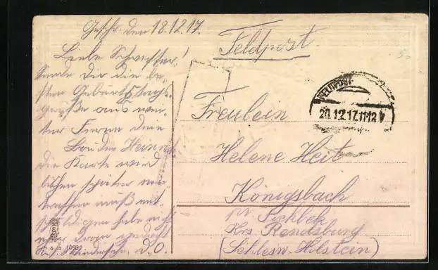 alte Ansichtskarte, gelaufen 1917, guter Zustand
