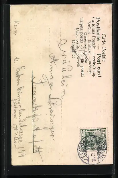 alte Ansichtskarte, gelaufen, Eckknick re. oben, Abriebspur re. oben, guter Zustand