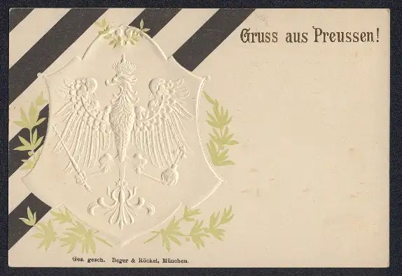 Präge-AK Preussen, Wappen mit Lorbeerzweigen