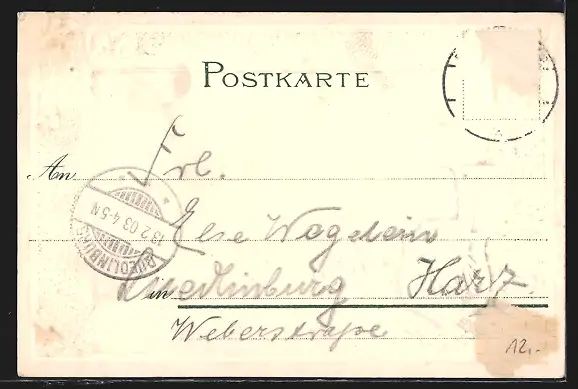 alte Ansichtskarte, gelaufen 1903, Briefmarke entfernt, rückseitig Klebe- und Papierreste, guter Zustand
