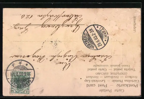 alte Ansichtskarte, gelaufen 1903, Eckknick li. oben, kleiner Einriss li. unten, guter Zustand