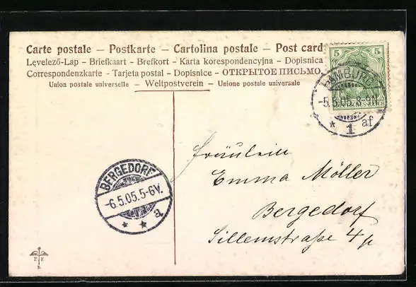 alte Ansichtskarte, gelaufen 1905, guter Zustand