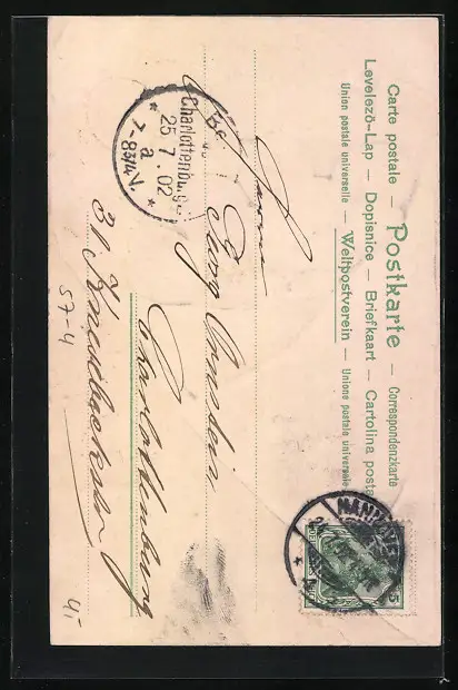 alte Ansichtskarte, gelaufen 1902, guter Zustand