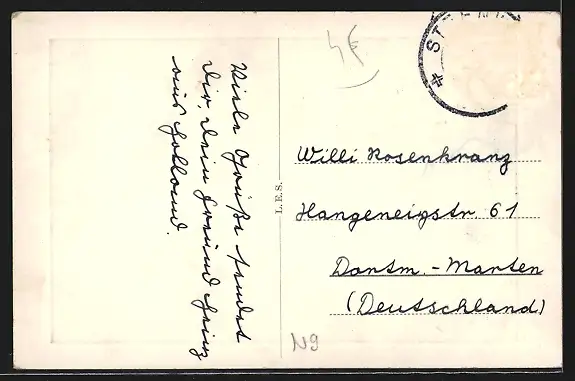 alte Ansichtskarte, gelaufen, Briefmarke entfernt, guter Zustand