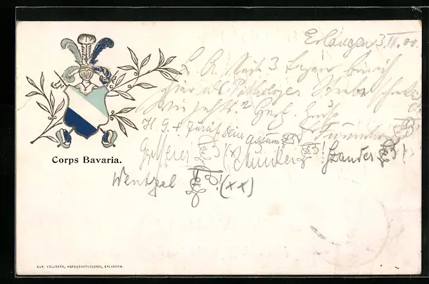 Präge-AK Studentenwappen Corps Bavaria mit Lorbeer