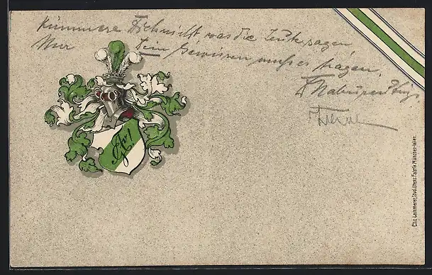 Präge-AK Studentenwappen in den Farben grün und weiss