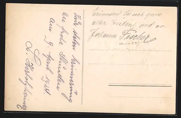 Personenbezogene Daten auf der Rückseite der Karte wurden durch blauen Textmarker unkenntlich gemacht. Die blauen Stellen sind auf die Vorderseite durchgeweicht und wirken sich negativ auf das Postkartenfoto aus
