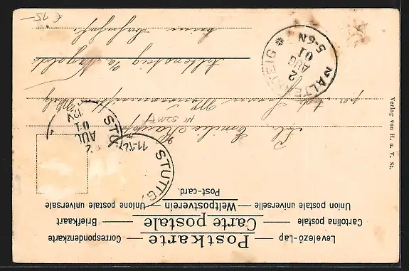 alte Ansichtskarte, gelaufen 1901, Briefmarke entfernt, rückseitig Oberflächenschaden, guter Zustand