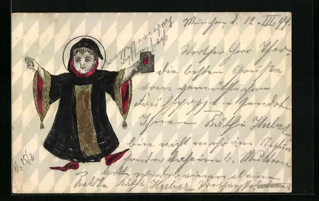 Präge-AK Tanzendes Münchner Kindl mit Büchlein