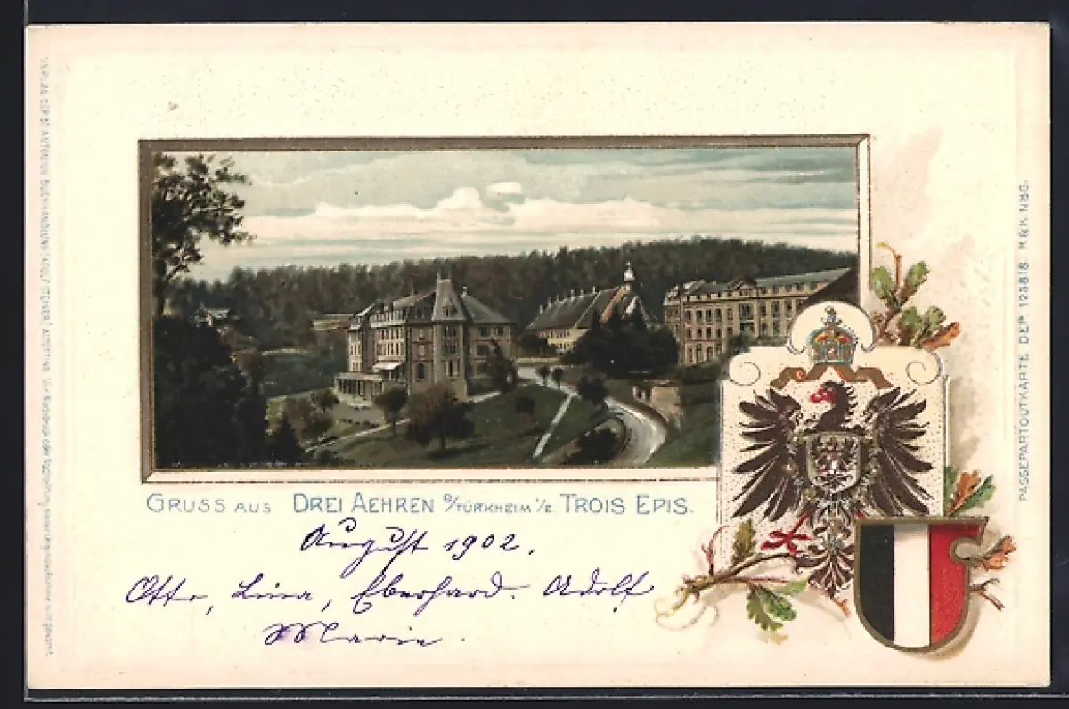 Präge-AK Trois-Épis, Kurhaus, Passepartout mit Wappen