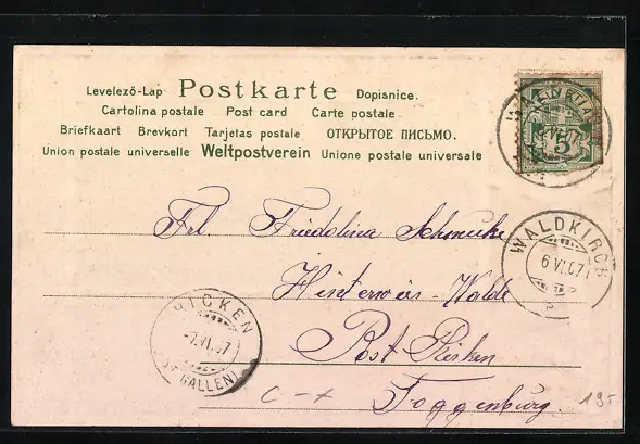 alte Ansichtskarte, gelaufen 1907, guter Zustand