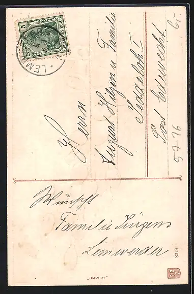 Personenbezogene Daten auf der Rückseite der Karte wurden durch blauen Textmarker unkenntlich gemacht. Die blauen Stellen sind auf die Vorderseite durchgeweicht und wirken sich negativ auf das Postkartenfoto aus