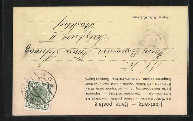 Personenbezogene Daten auf der Rückseite der Karte wurden durch blauen Textmarker unkenntlich gemacht. Die blauen Stellen sind auf die Vorderseite durchgeweicht und wirken sich negativ auf das Postkartenfoto aus