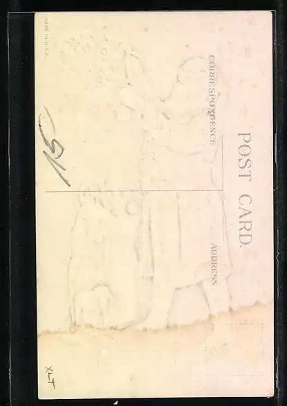 Personenbezogene Daten auf der Rückseite der Karte wurden durch blauen Textmarker unkenntlich gemacht. Die blauen Stellen sind auf die Vorderseite durchgeweicht und wirken sich negativ auf das Postkartenfoto aus