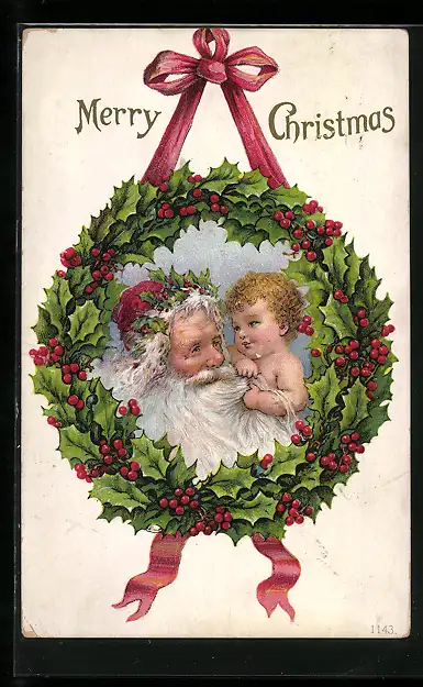 Präge-AK Weihnachtsmann mit Kind auf dem Arm