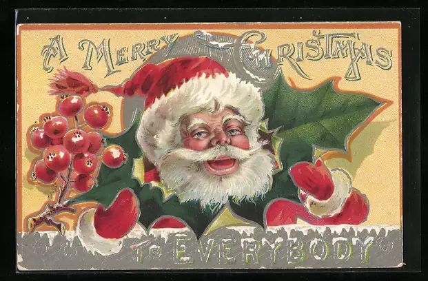 Präge-AK Weihnachtsmann mit Stechpalmenzweig