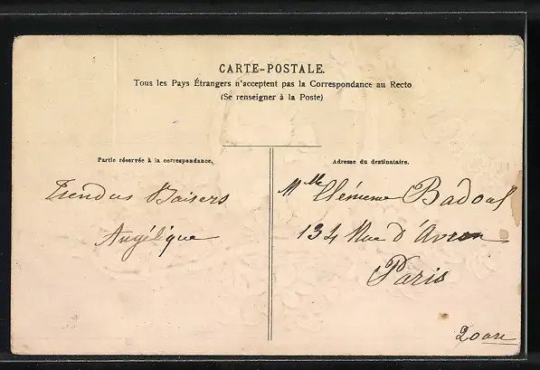 Personenbezogene Daten auf der Rückseite der Karte wurden durch blauen Textmarker unkenntlich gemacht. Die blauen Stellen sind auf die Vorderseite durchgeweicht und wirken sich negativ auf das Postkartenfoto aus