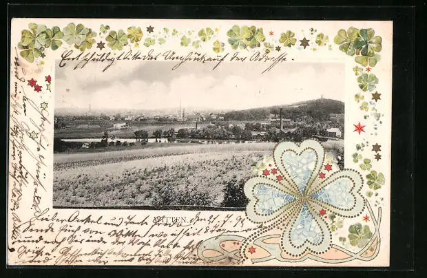 Präge-AK Witten, Totalansicht miz blühenden Feldern