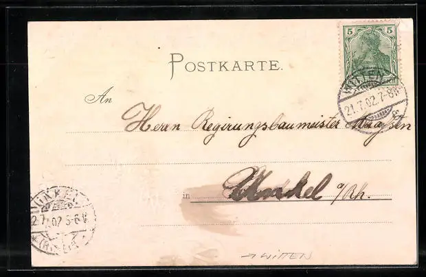 alte Ansichtskarte, gelaufen 1902, Eckknick li. oben, guter Zustand