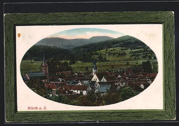 Präge-AK Wörth a. S., Ortsansicht mit Blick ins Land