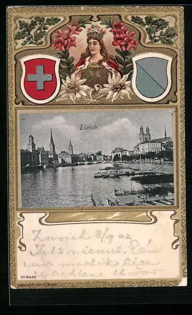 Präge-AK Zürich, Limmatpartie, Wappen, Helvetia