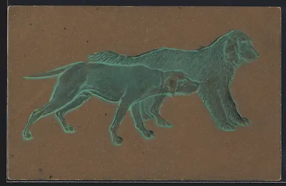 Präge-AK Zwei Jagdhunde gehen nebeneinander
