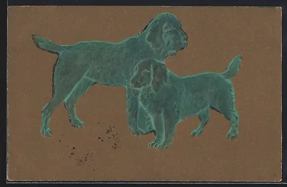 Präge-AK Zwei Jagdhunde stehen nebeneinander