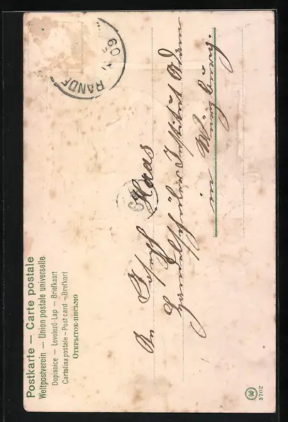 alte Ansichtskarte, gelaufen, Briefmarke entfernt, guter Zustand
