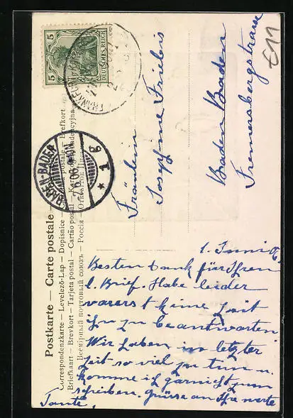 alte Ansichtskarte, gelaufen 1906, Stempelspur, guter Zustand