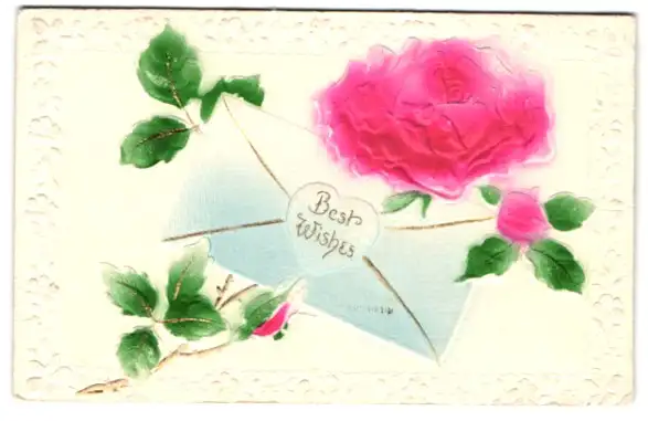 Präge-Airbrush-AK Blauer Brief und rote Rosen