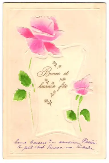 Präge-Airbrush-AK Blühende Blumen mit Blättern