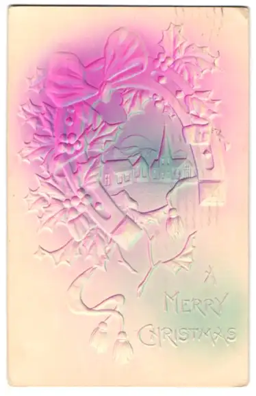 Präge-Airbrush-AK Dorfidyll mit Kirche