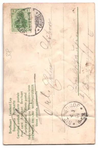 alte Ansichtskarte, gelaufen 1904, Bugspur unten, guter Zustand