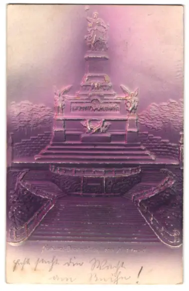 Präge-Airbrush-AK National-Denkmal auf dem Niederwald