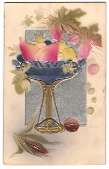 Präge-Airbrush-AK Obst in einem Kelch