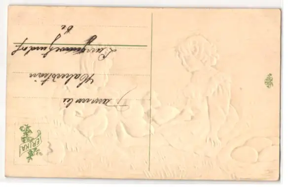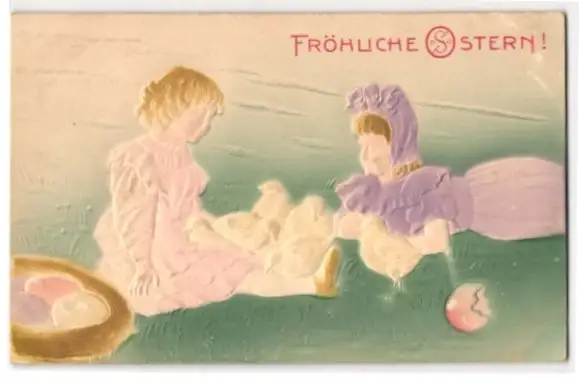 Präge-Airbrush-AK Ostergruss, Mädchen mit Osterküken