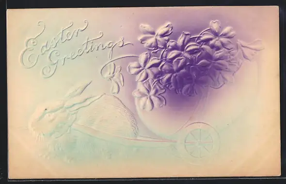 Präge-Airbrush-AK Osterhase mit Osterei voller Blumen