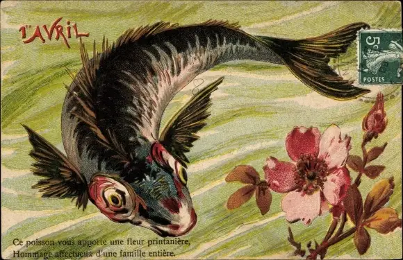 Präge Ak 1 April, 1er Avril, Fisch, Blume