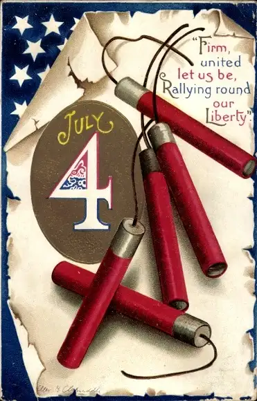Präge Ak 4. Juli, Unabhängigkeitstag der USA, Feuerwerkskörper