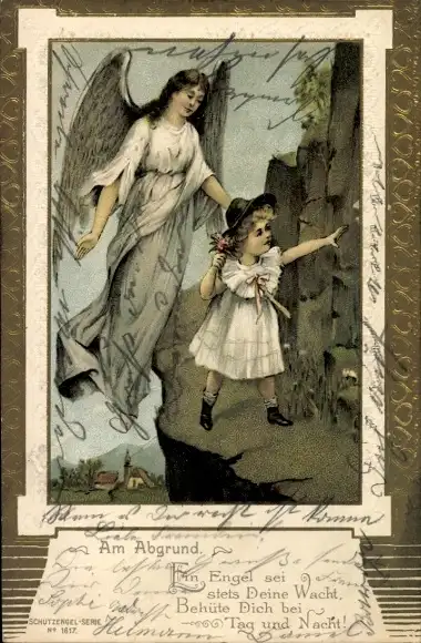 Präge Ak Am Abgrund, Mädchen mit Schutzengel