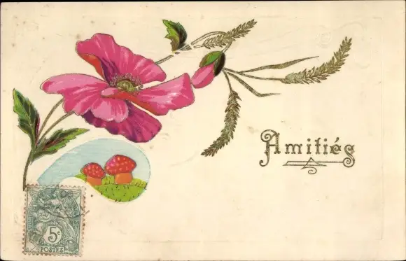 Präge Ak Amities, Blume, Pilze, Kitsch