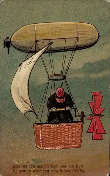 Präge Ak Ballon mit Handantrieb, Zeppelin
