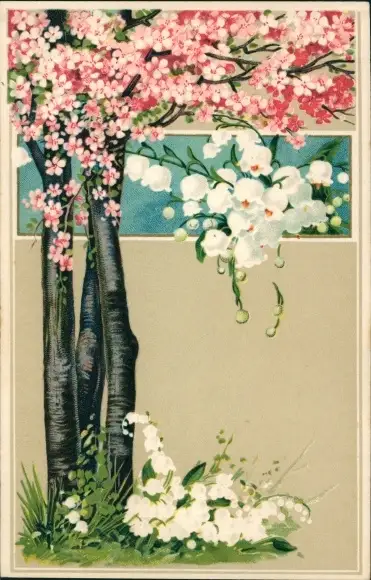 Präge Ak Baumblüte, Kirschbaum, Maiglöckchen
