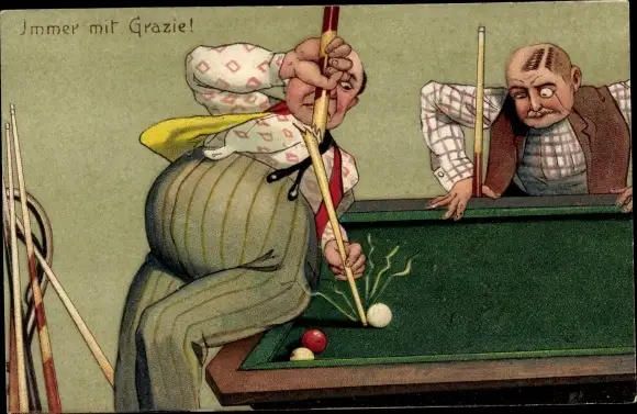 Präge Ak Billard, Humor, Queue gebrochen, Immer mit Grazie
