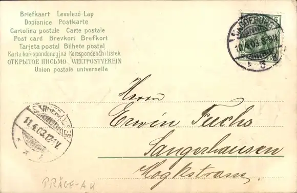 Zustand, siehe Scan, gelaufen, 1903 - ca 14 cm X 9 cm